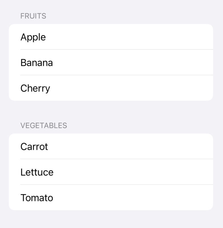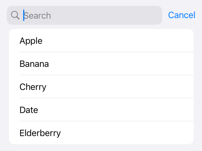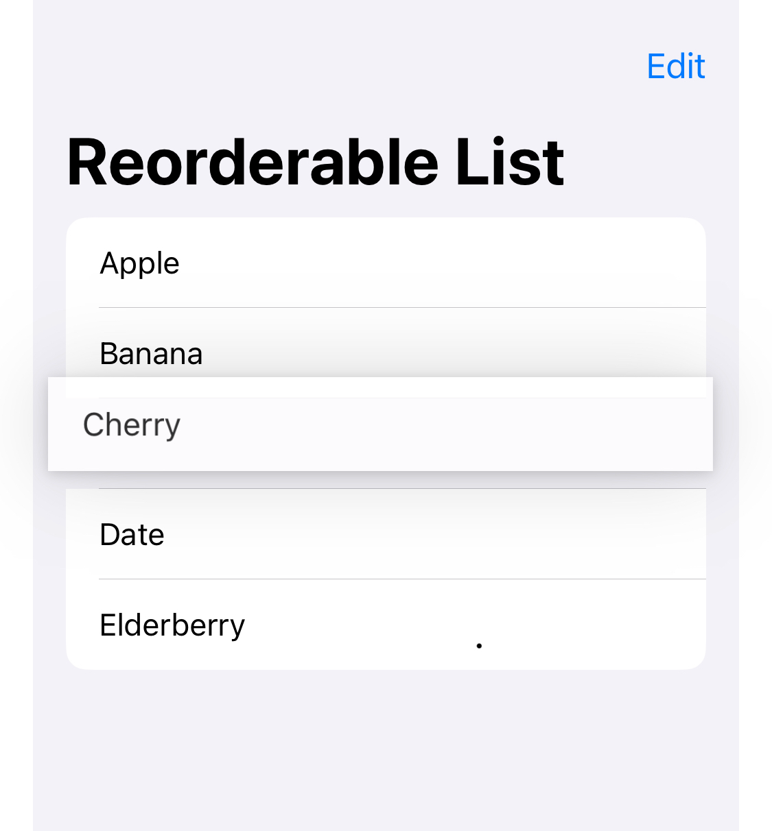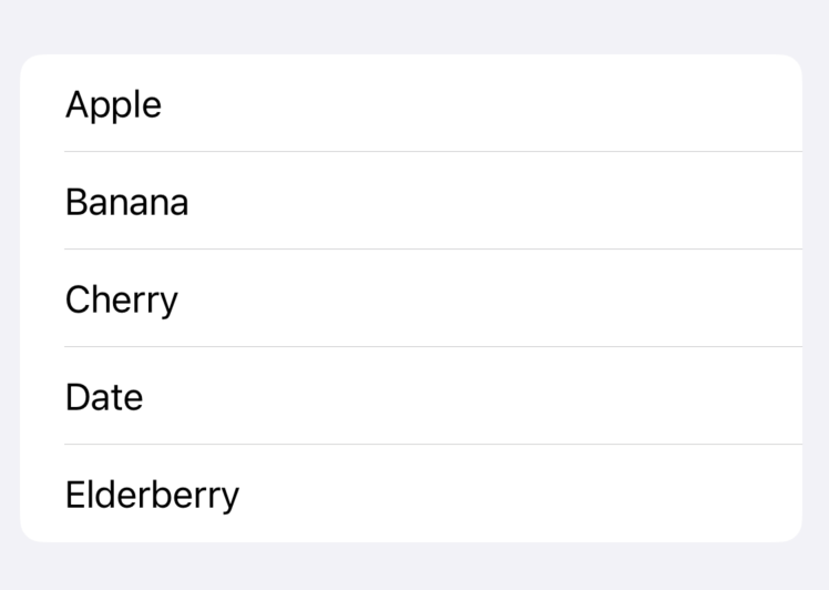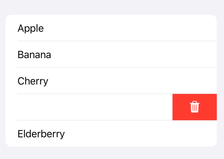 @State private var items = ["Apple", "Banana", "Cherry", "Date", "Elderberry"]