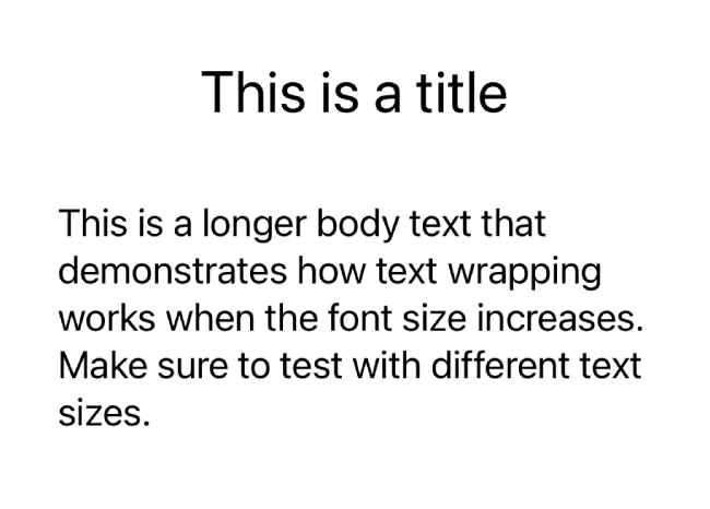 Text("This is a longer body text that demonstrates how text wrapping works when the font size increases. Make sure to test with different text sizes.")