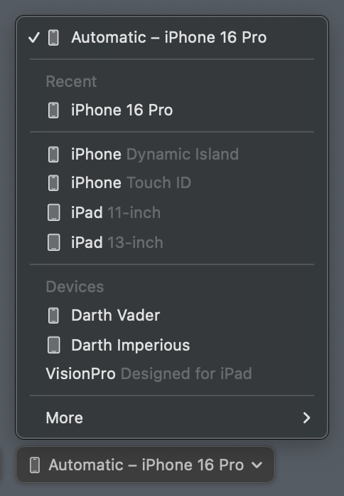 Next to the Device Picker, you have options to adjust the orientation and color scheme.