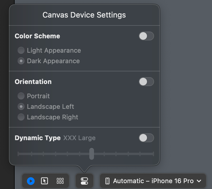 Simulate Different Environments: Combine device selection with orientation, color scheme, and accessibility settings.