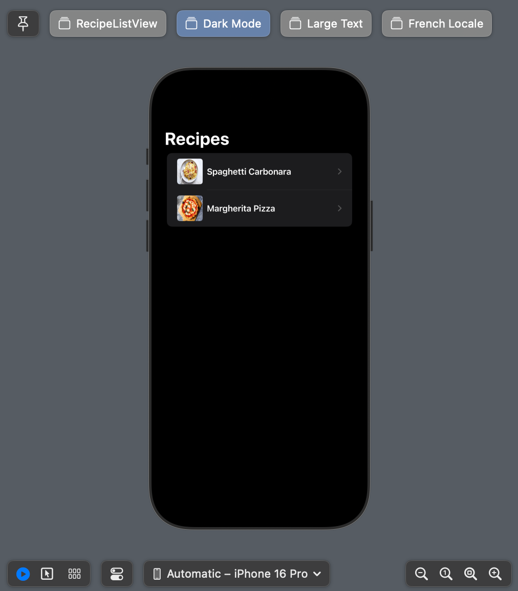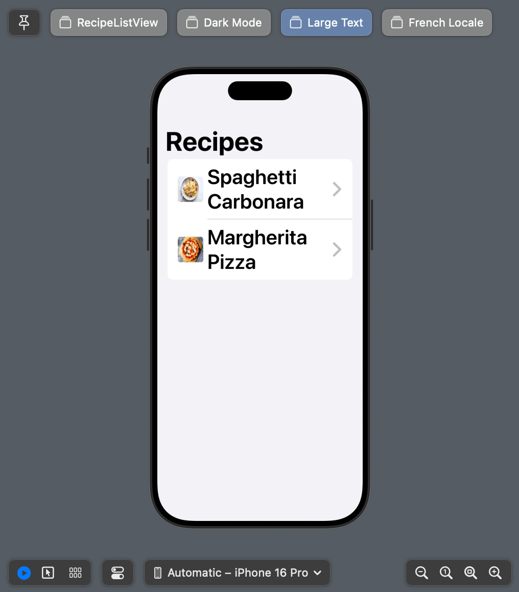 We’ll create a SwiftUI application that displays a list of recipes. We’ll use the Preview Content group, the #Preview macro, and explore Canvas device settings to enhance our development workflow.