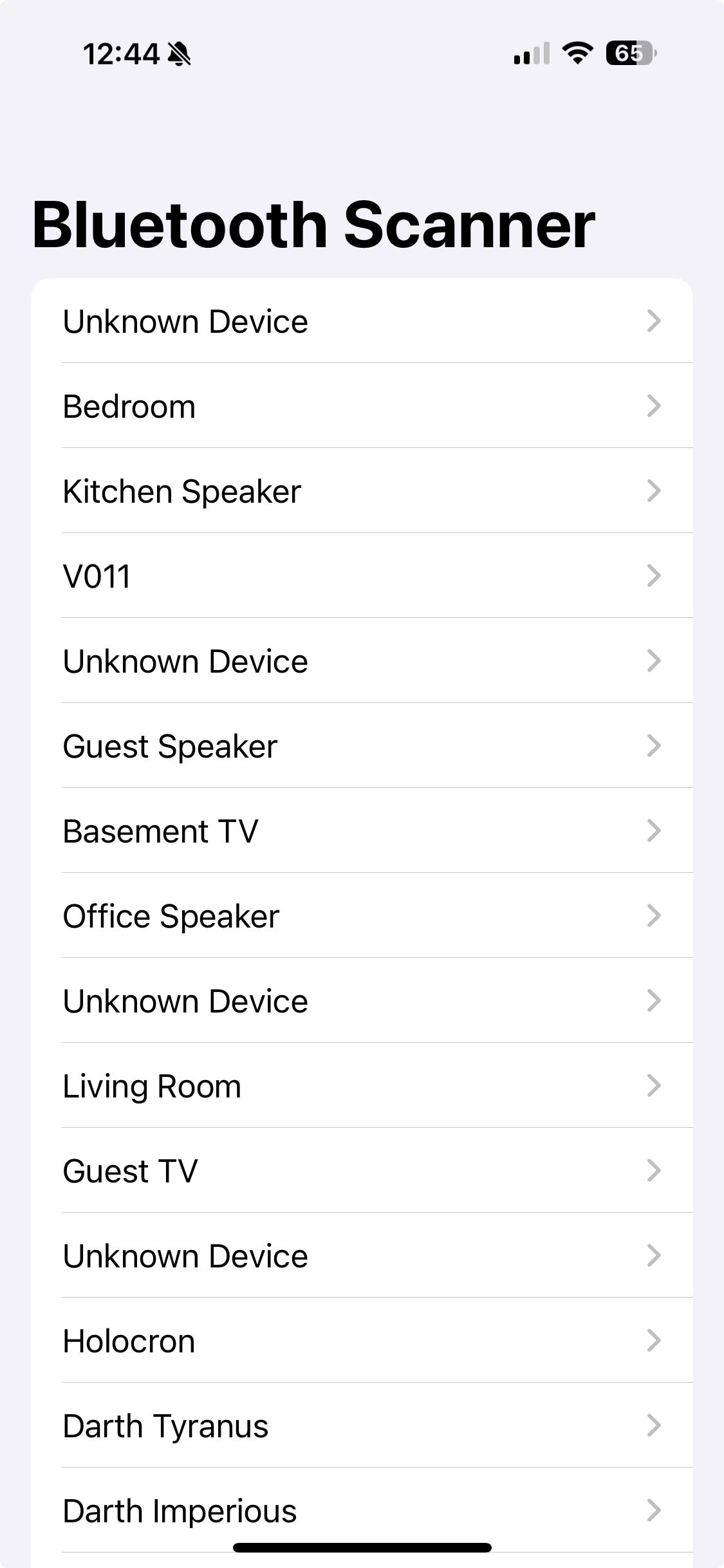 - Allows users to select a device and navigate to a details screen to see more Bluetooth metadata.