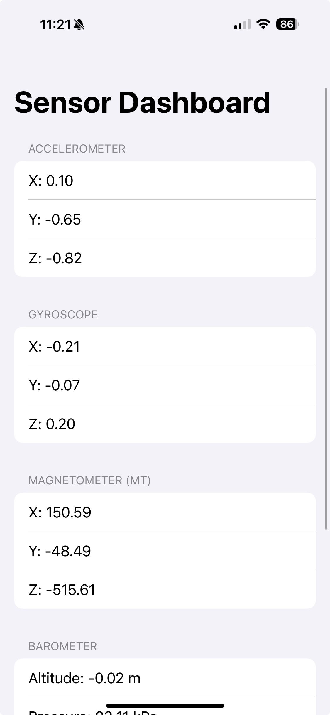 - NSMotionUsageDescription: Required for motion sensors (accelerometer, gyroscope, magnetometer, barometer).